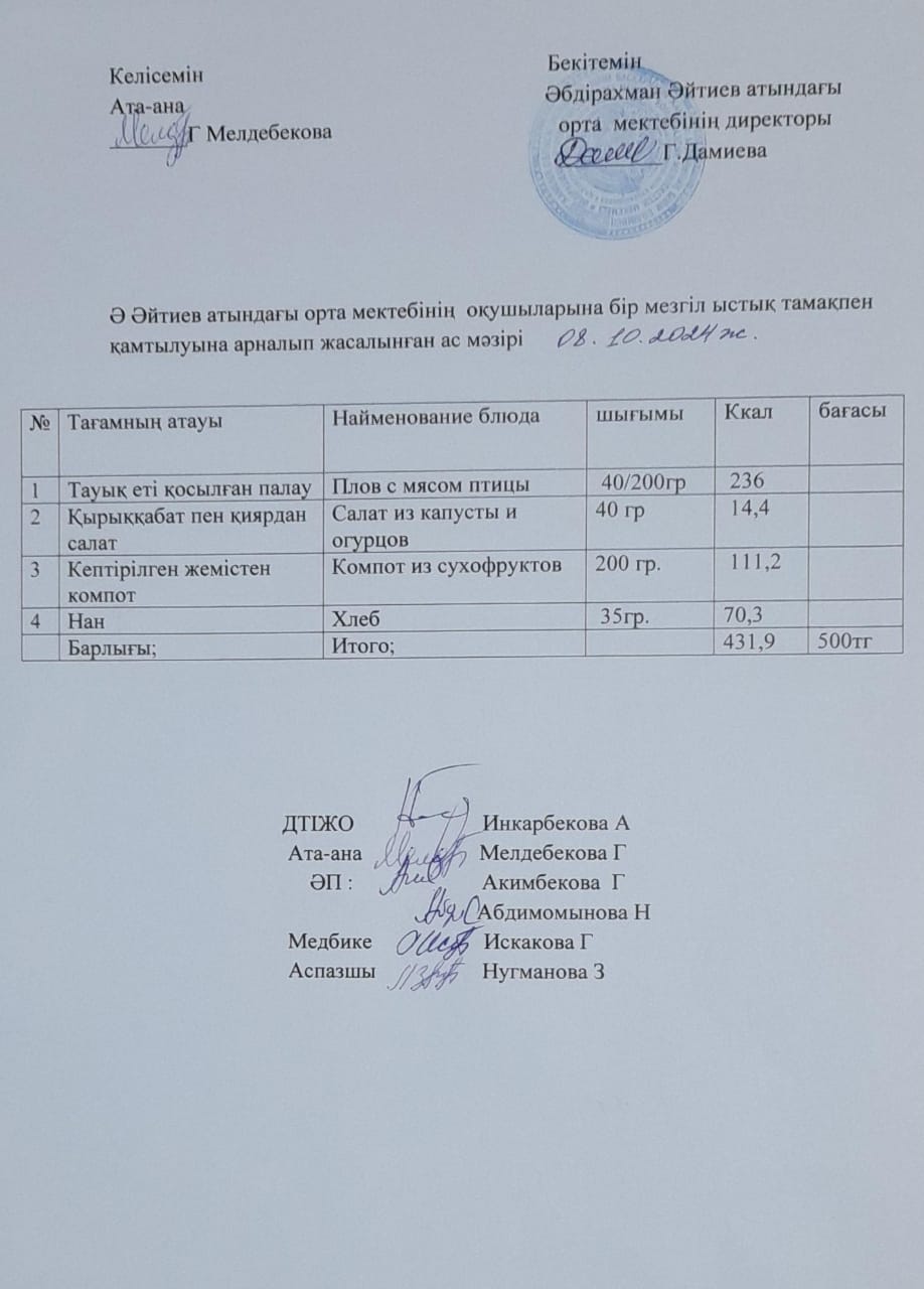 ""2024-2025 оқу жылы 8-қазан күніне арналған аз мәзірі"" » Әбдірахман Әйтиев атындағы орта мектебі