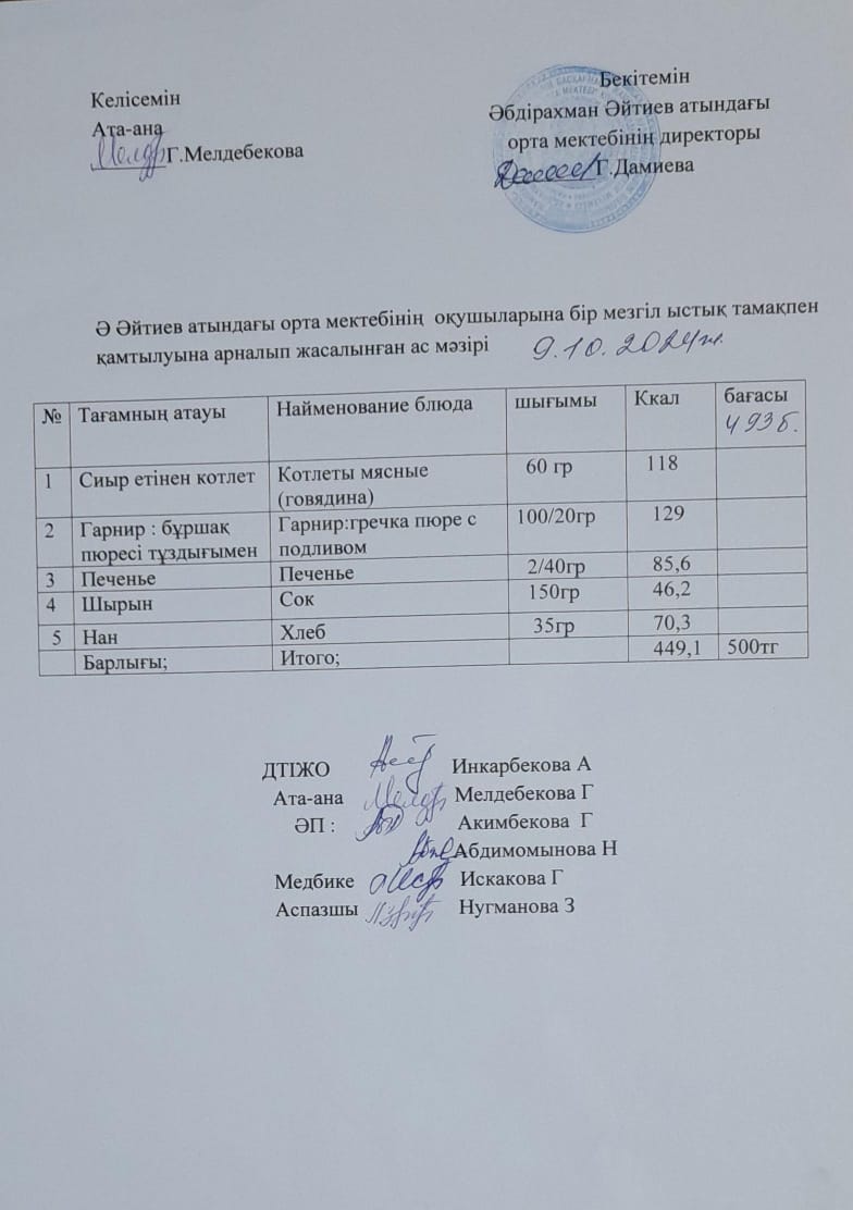 » » » ""2024-2025 оқу жылы 9-қазан күніне арналған аз мәзірі""