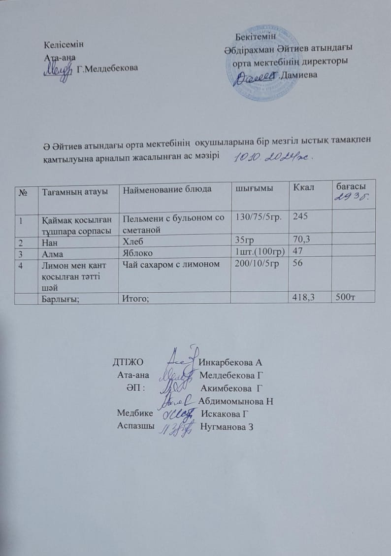 » » » ""2024-2025 оқу жылы 10-қазан күніне арналған аз мәзірі""