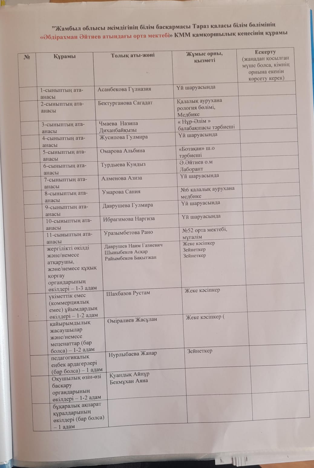 2025-2026 оқу жылы Қамқоршылық кеңес құрамы » Әбдірахман Әйтиев атындағы орта мектебі