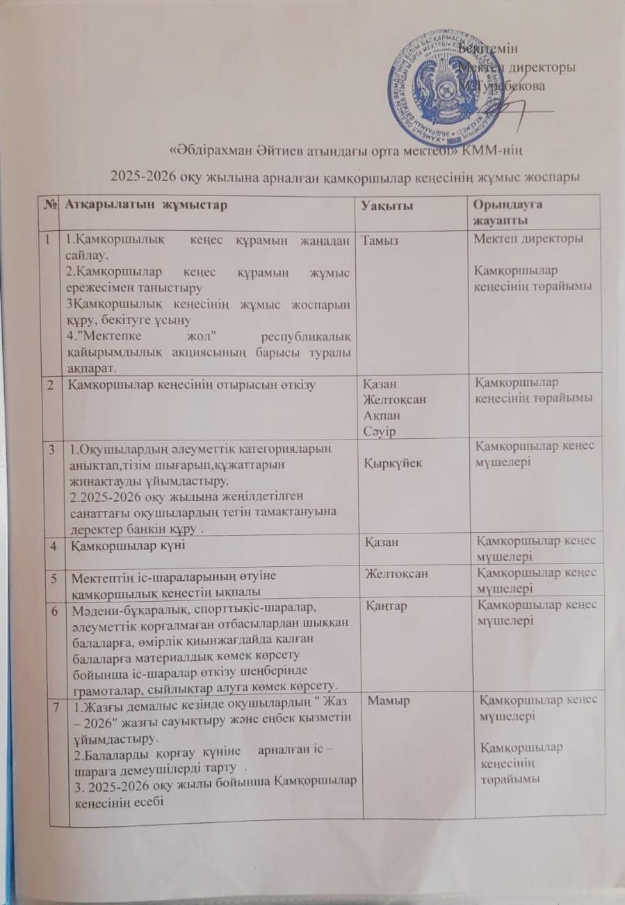 2025-2026 оқу жылы қамқоршылық кеңесінің жұмыс жоспары » Әбдірахман Әйтиев атындағы орта мектебі