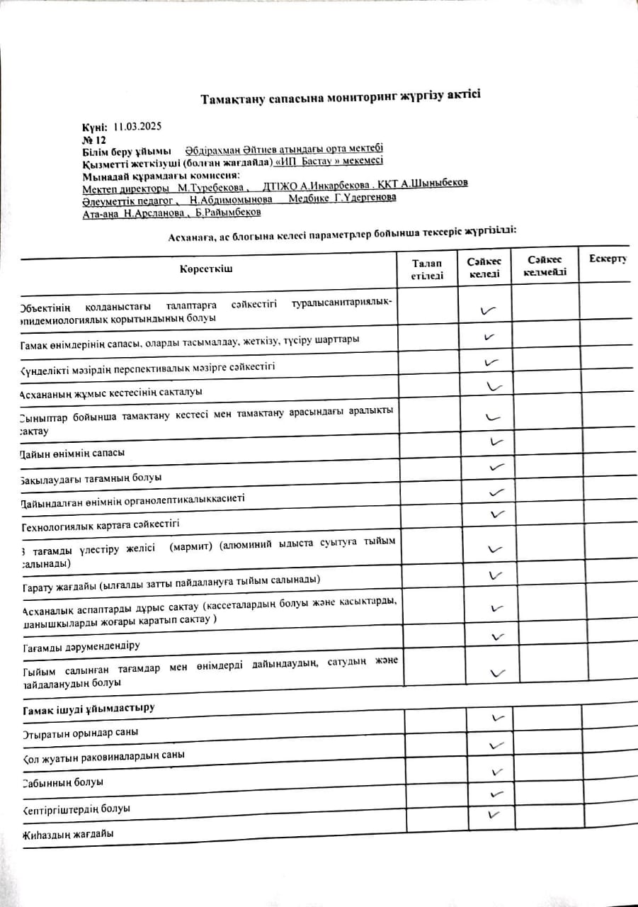 2024-2025 оқу жылының наурыз айындағы бракираж комиссия отырысының актісі » Әбдірахман Әйтиев атындағы орта мектебі